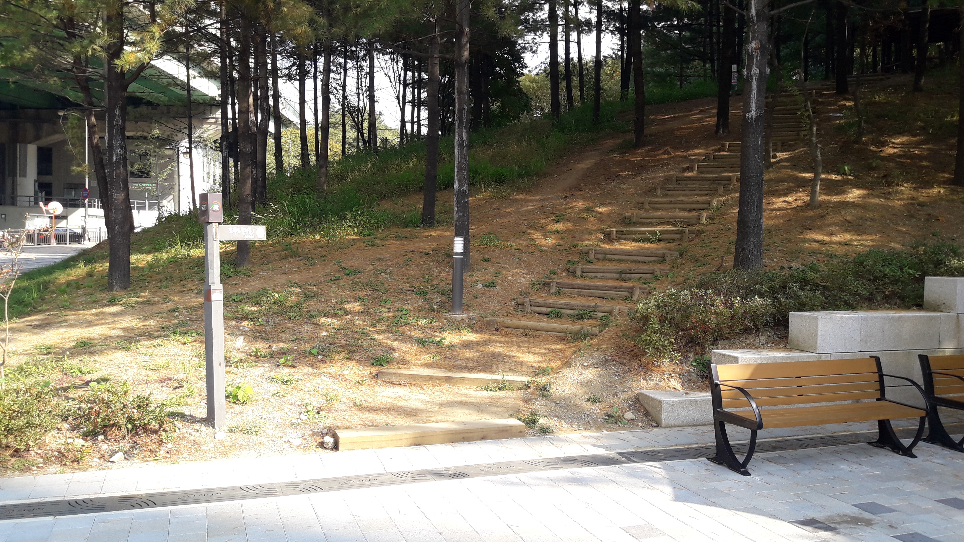 아래 보이는 곳이 공원에서 연결된 등산로 입구 입니다. 찾기 쉽게 되어 있네요.